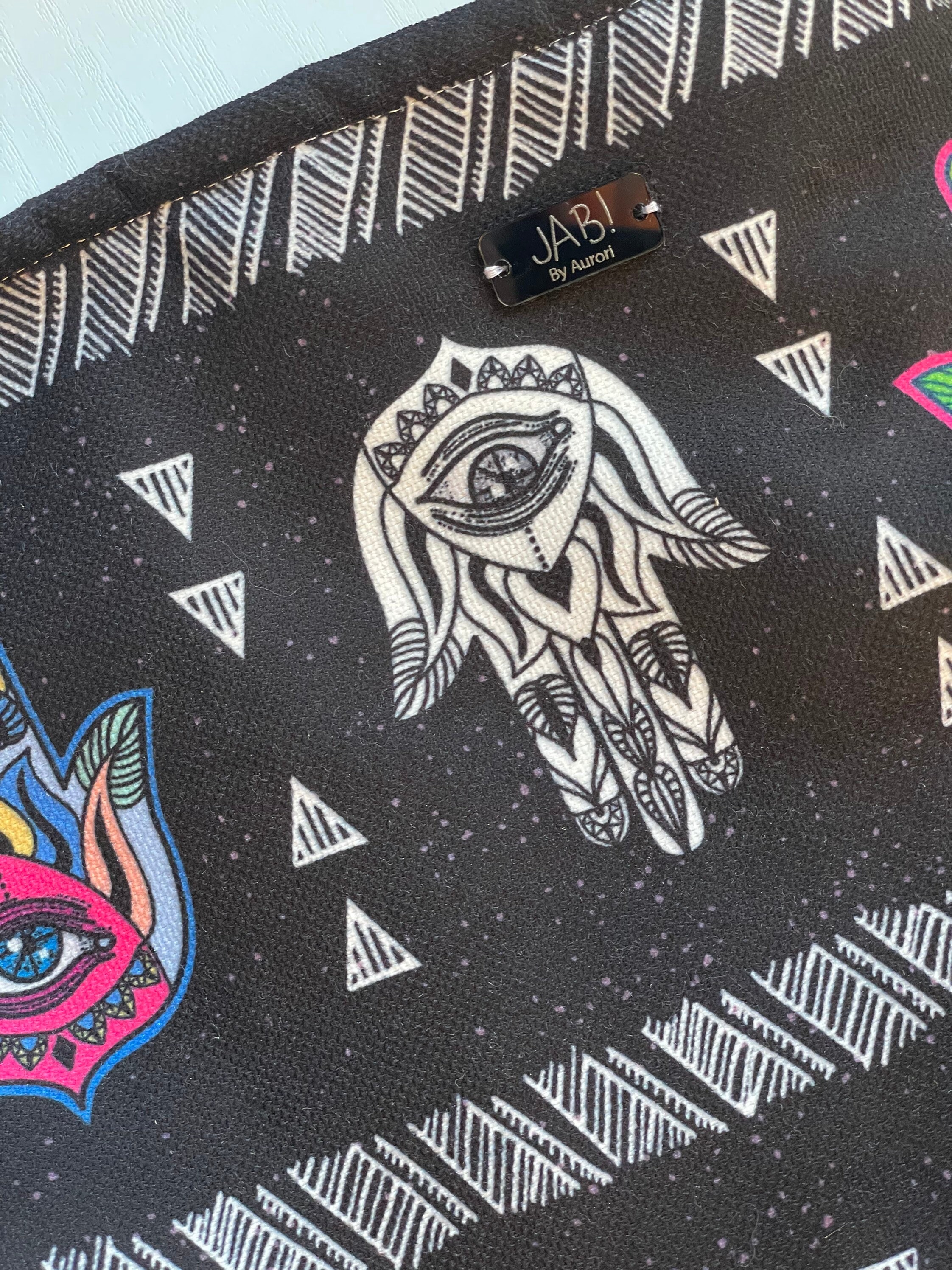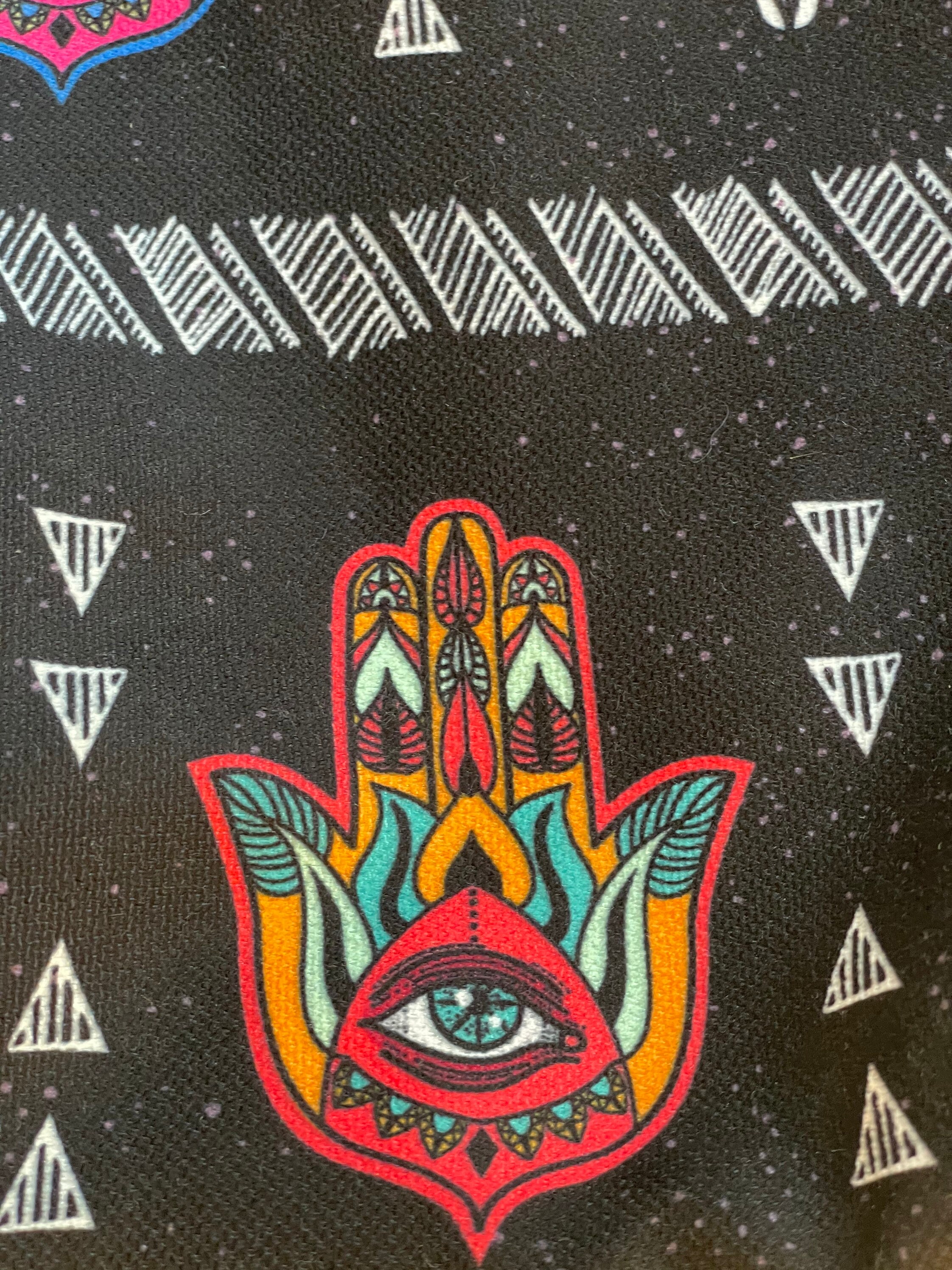 Black HAMSA print fabric; Multipurpose upholstery digitally printed fabric.